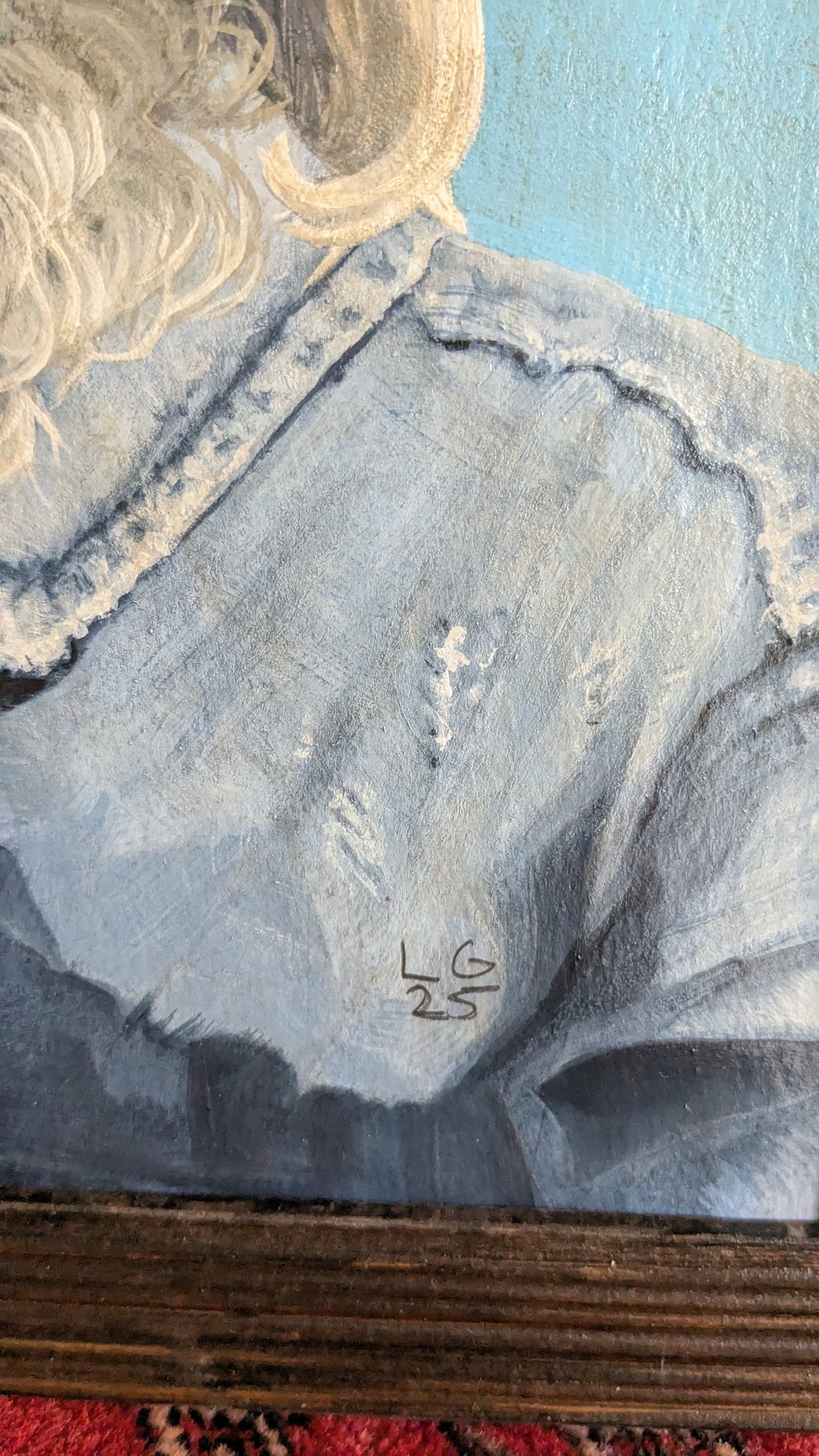 - Comes in a dark wood frame (no glass), frame measures 1 1/4"